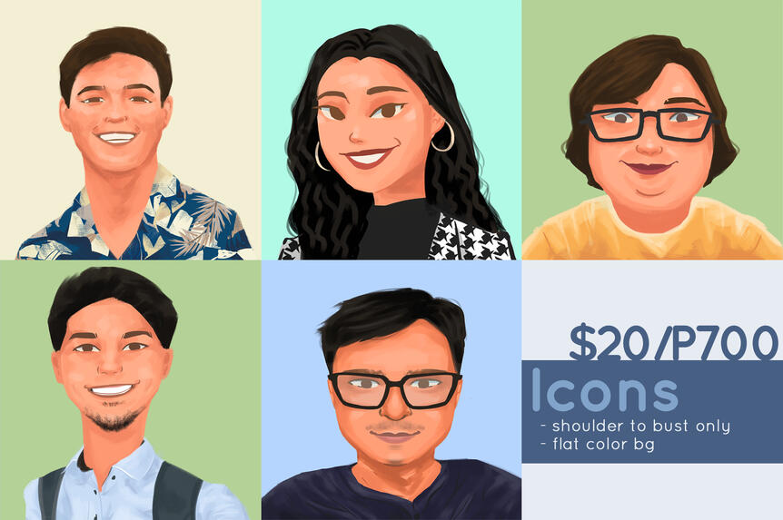 • Icon commissions will be on a plain solid background. (You may choose any color you want)